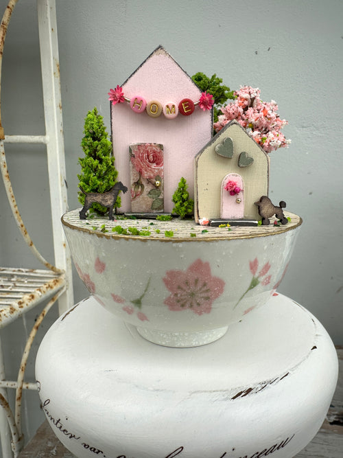 Handmade Houses pink series Cottage set on cup stand