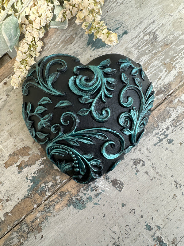 Wall heart Black with Kingfisher Blue Scrolls